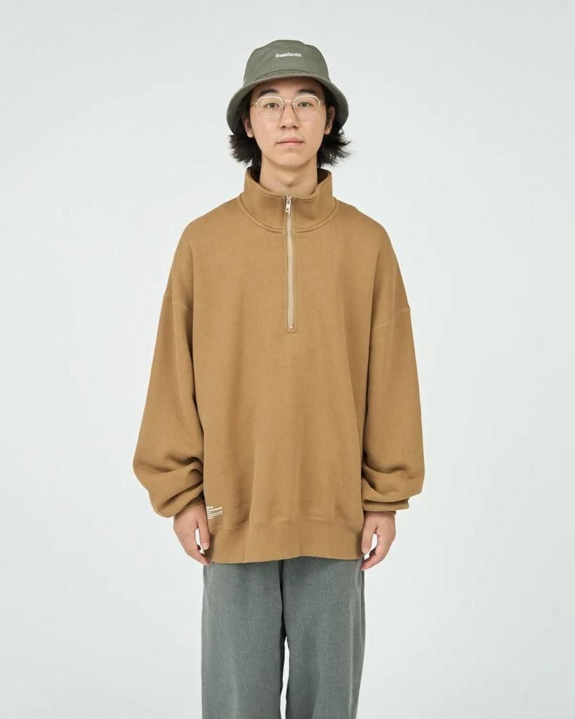 しっかりとしたタフな風合いを感じられるスタンドカラーのハーフジッププルオーバースウェット。