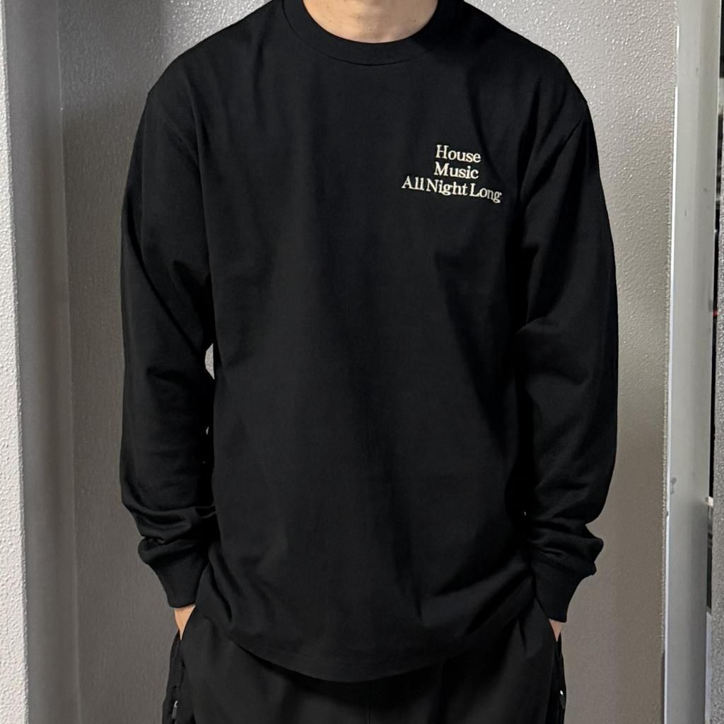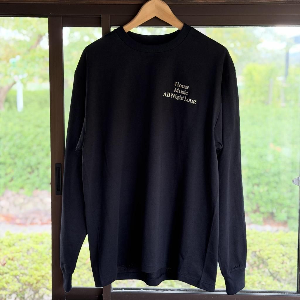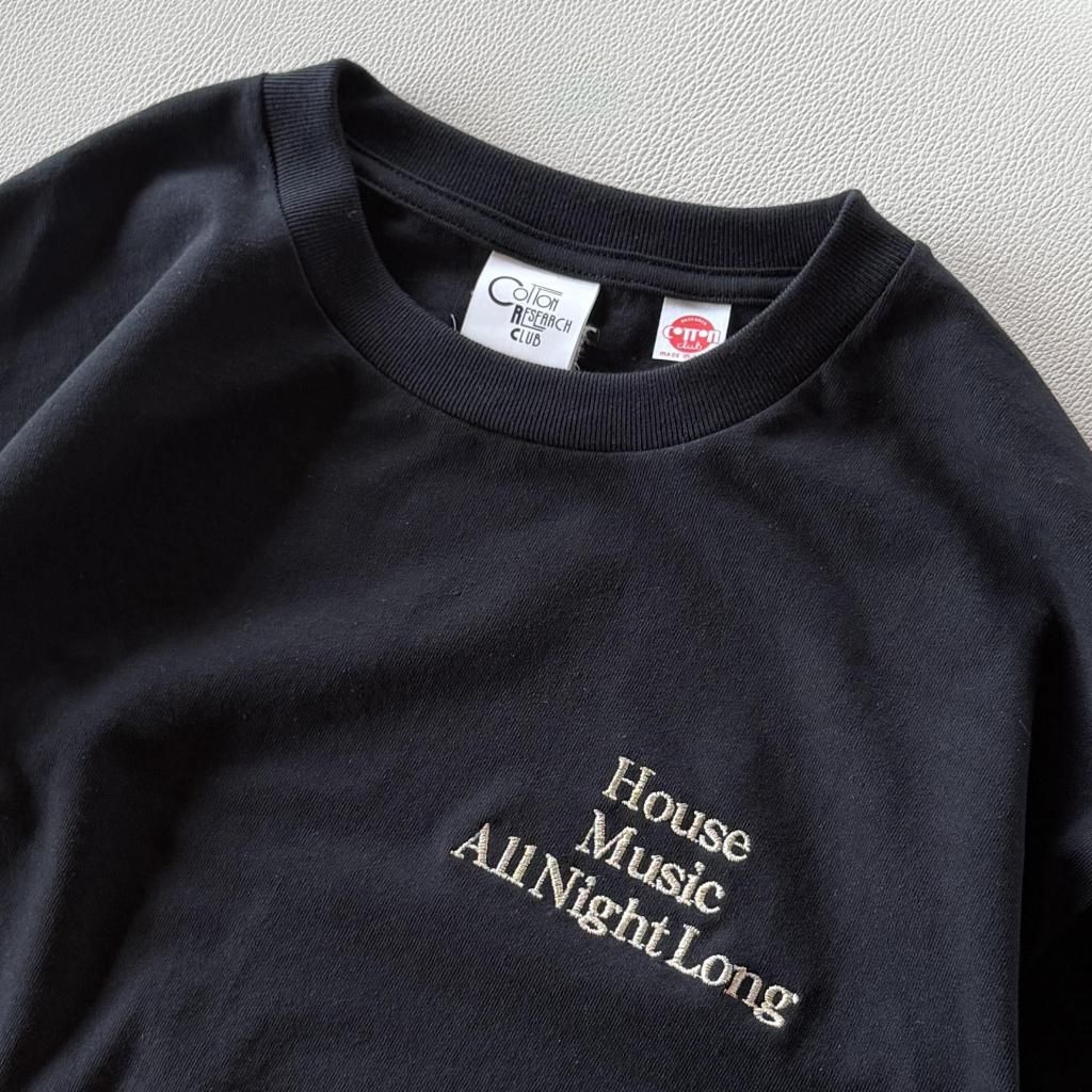 左胸に上品なシャンパン色で"House Music All Night Long"、背上にEEMロゴ刺繍。